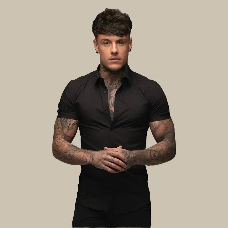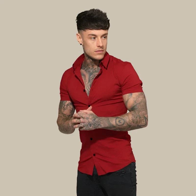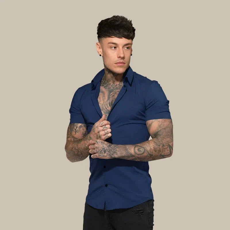 Camicia Franck - Camicia slim fit a maniche corte in tessuto elasticizzato di alta qualità per uomo