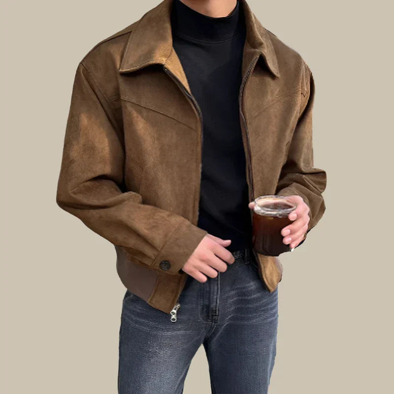 Porta il tuo stile a un livello superiore con la Giacca retrò in pelle scamosciata David