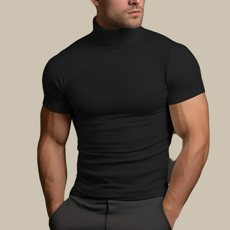 Dario - Maglietta a manica lunga con collo alto per uomo dal taglio muscolare e stile sofisticato