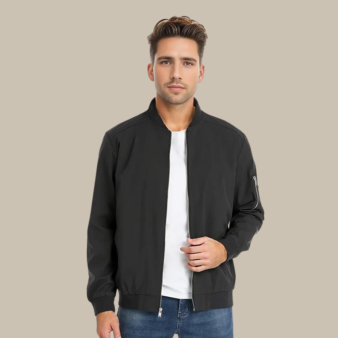 Elegante giacca trapuntata da uomo con collo basso e chiusura a zip