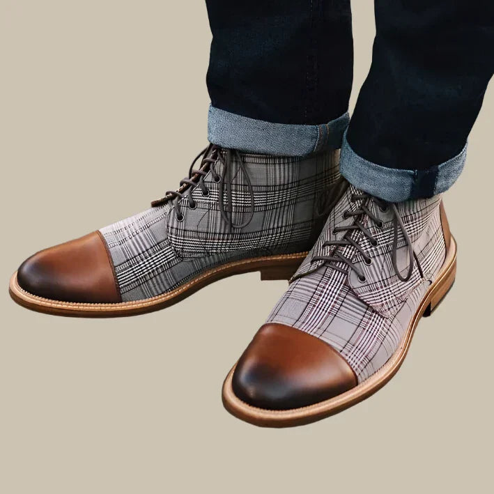 Floris - Stivaletti premium a quadri per uomo con lacci per un look elegante