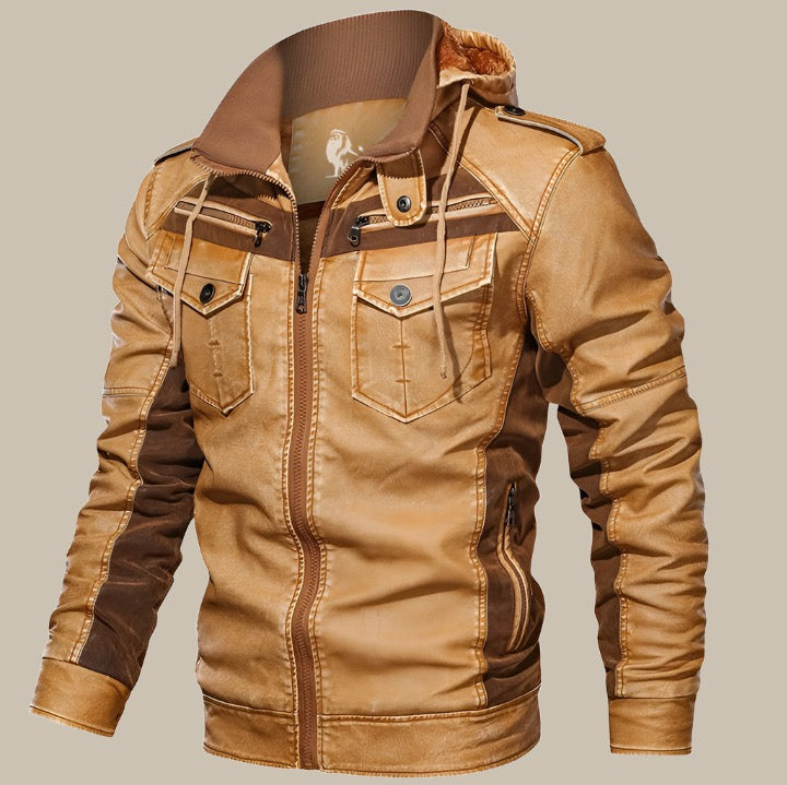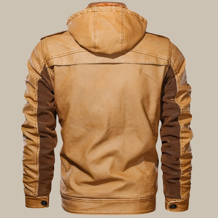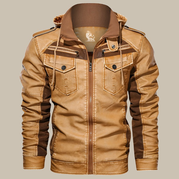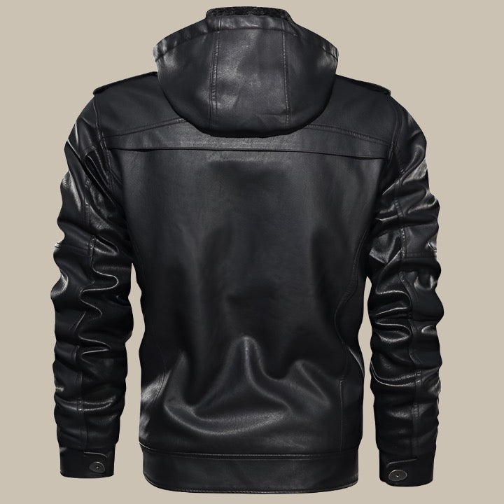 Giacca in pelle | Giacca intermedia da uomo premium con cappuccio