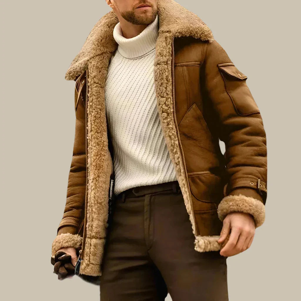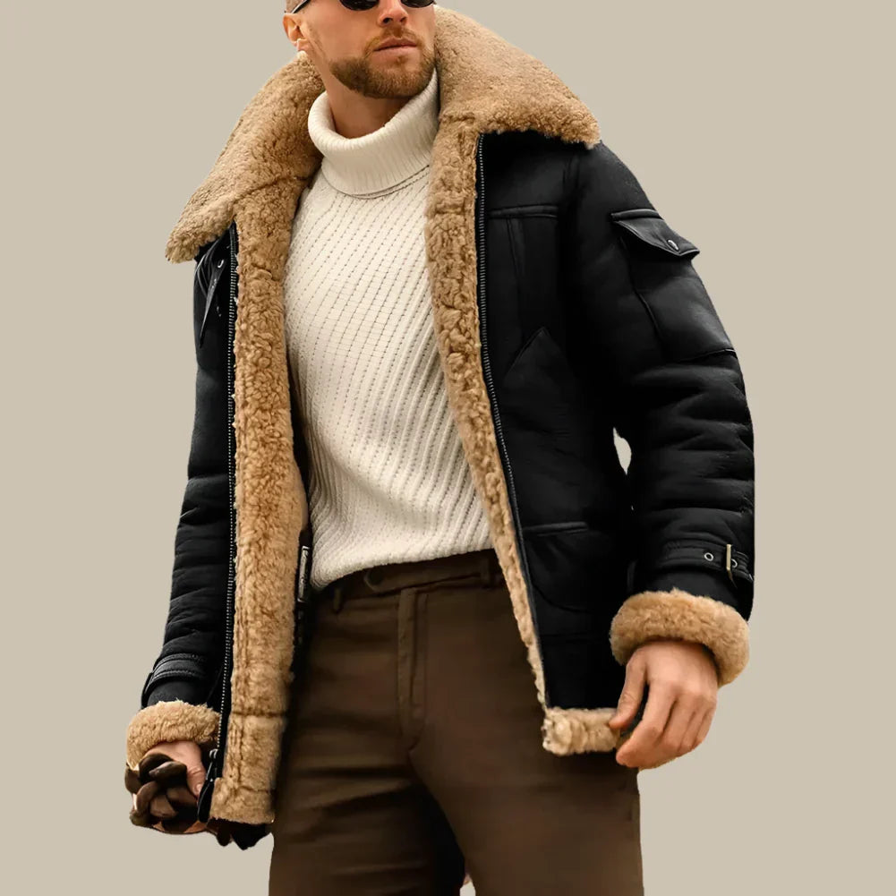 Giacca Invernale Aviatore | Elegante giacca lunga in pelle da uomo con fodera in lana