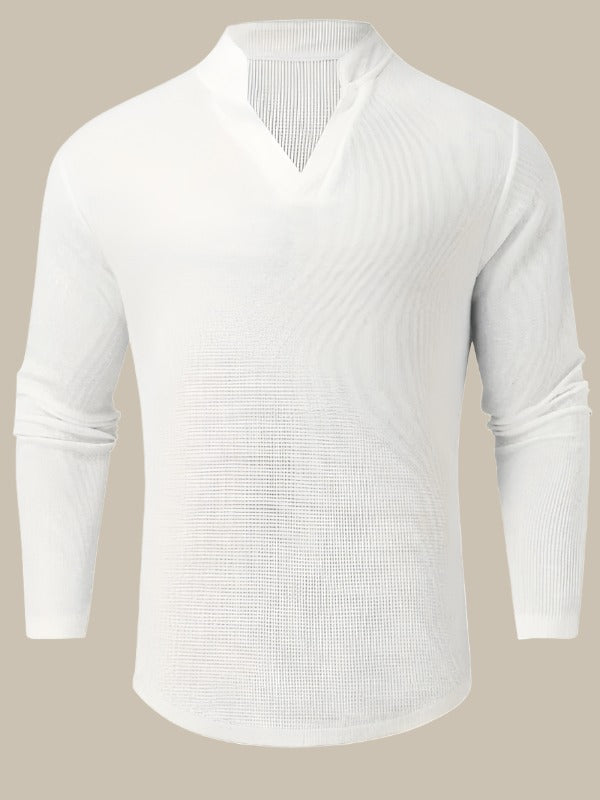Marco - T-shirt estiva bianca a maniche lunghe con scollo a V